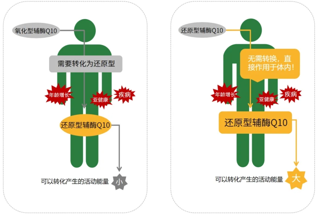 它在人(rén)體(tǐ)內(nèi)有(yǒu)兩種形式:氧化(huà)形式和(hé)還(hái)原形式。氧化(huà)型輔酶 Q10溶解度ε差,且在消化(huà)系統內(nèi)需要(yào)被還(hái)原為(wèi)還(hái)原型才能(néng)被吸收;而還(hái)原 型輔酶 Q10 溶解度高(gāo),不(bù)需要(yào)額外(wài)轉換,可(kě)以被人(rén)體(tǐ)直接吸收。因此還(↓hái)原型輔酶 Q10尤其受到(dào)中老(lǎo)年(nián)人(rén)、免疫力低(dī)下(xià)人(rén)群以及患有(yǒu)慢(màn≤)性疾病需補充能(néng)量人(rén)群的(de)喜愛(ài)。但(dàn)是(shì)由于還(há‍i)原型輔酶Q10在空(kōng)氣中極易被氧化(huà),制(zhì)備成本高(gāo)昂,因此市(shì)場(chǎng)主流産品仍然以普通(tōng)氧化(huà)型為(γwèi)主。如(rú),我們通(tōng)常在網站(zhàn)上(shàng)看(kàn)見(jiàn)的(de)輔酶Q10如(rú)果不(b₹ù)加定義,往往指的(de)是(shì)氧化(huà)型的(de)普通(tōng)輔酶Q10。