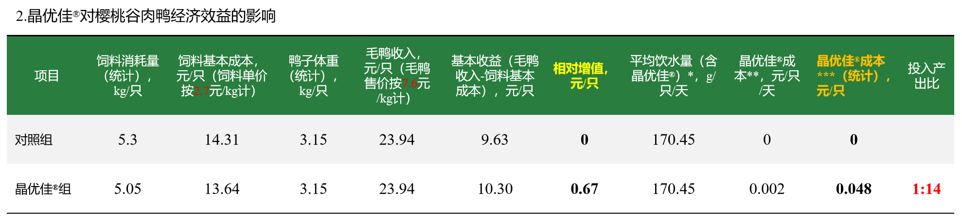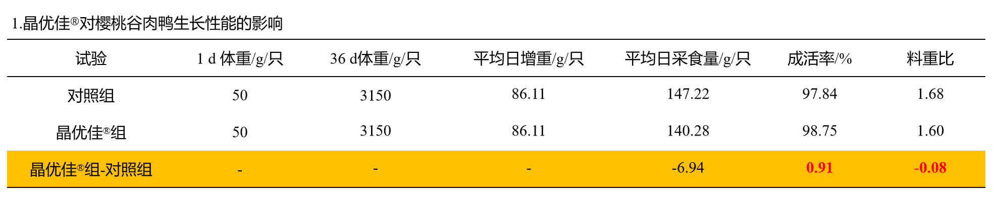 晶優佳®在櫻桃谷肉鴨養殖中的(de)實踐驗證