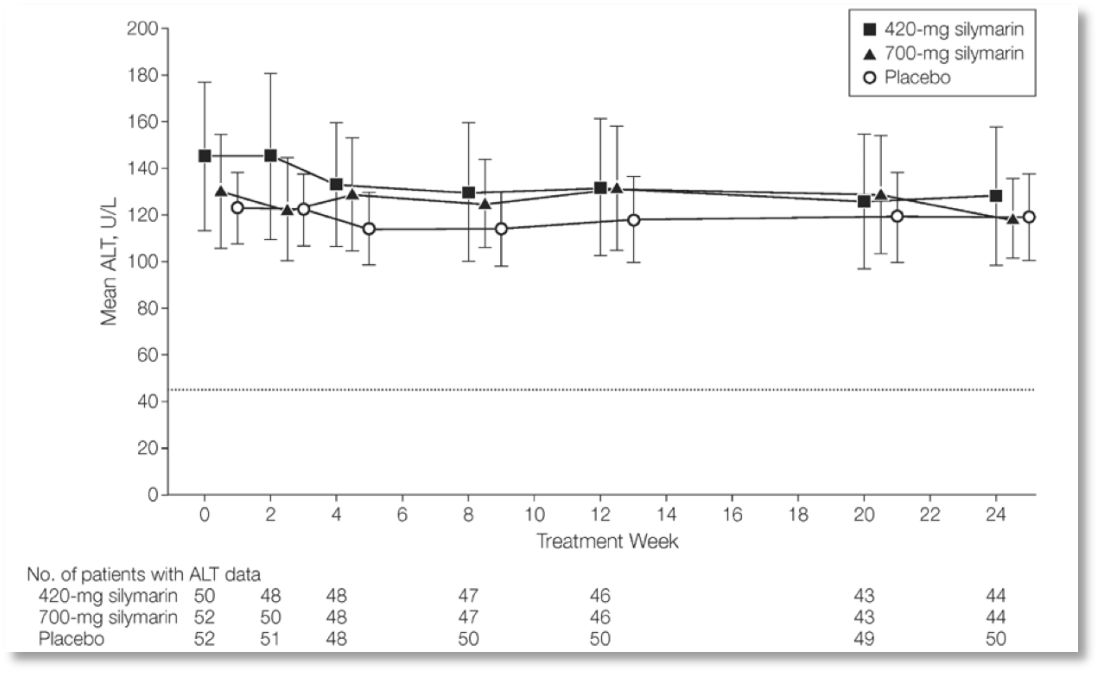 [3]Fried M.W., Navarro V.J., Afdhal N., Belle S.H., Wahed A.S., Hawke R.L.,¶ Doo E., Meyers C.M., Reddy K.R., Silymarin N., et al. <Effect of silymarin (milk thistle) on liver disease in patients with chronic hepatitis C unsuccessfully treated∏ with interferon therapy: A randomized controlled trial.JAMA. 2012;308:274–282. doi: 10≥.1001/jama.2012.8265.