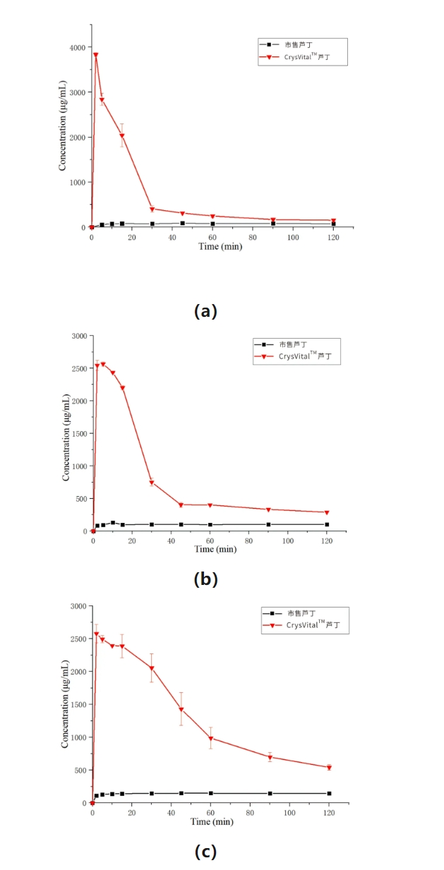 市(shì)售蘆丁和(hé)CrysVitalTM蘆丁的(de)對(duì)比: