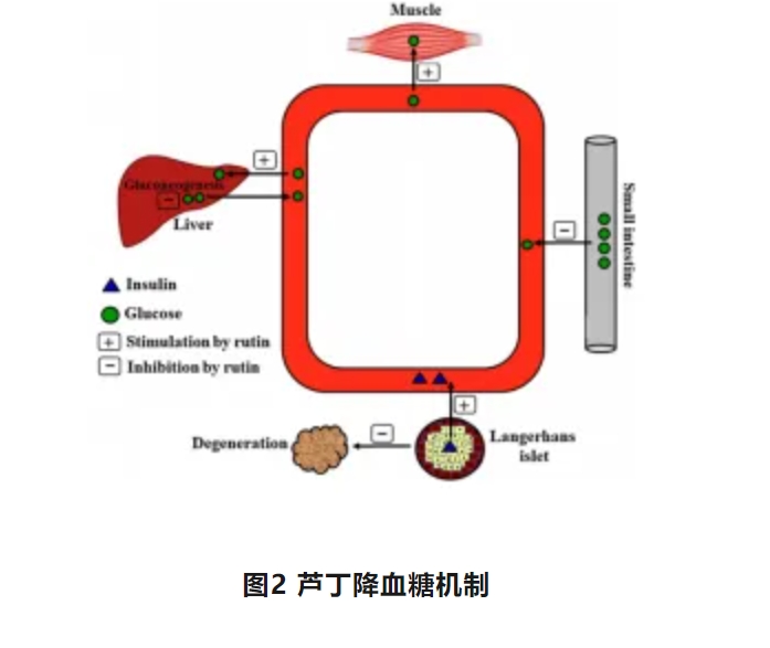 此外(wài),多(duō)項研究表明(míng),蘆丁可(kě)以通(tōng)過抑制(zhì)α-澱粉酶和(hé)α-葡萄糖苷酶的 (de)活性降低(dī)小(xiǎo)腸對(duì)葡萄糖的(de)吸收,此外(wài)還(hái)可(kě)以通(tōng)過增加胰島素釋放(fàng)以及增加組織對(duì)葡萄糖的©(de)攝取等發揮降血糖作(zuò)用(yòng),且能(néng)通(tōng)過改善體(tǐ)內(nè®i)氧化(huà)應激水(shuǐ)平、減少(shǎo)晚期糖基化(huà)終末産物(wù)的(de)産生(shēng)和(hé)山(shān)梨醇的(de)積累等對(duì)糖尿病并∞發症具有(yǒu)有(yǒu)益作(zuò)用(yòng)(如(rú)圖2所示)[8]。Jadhav等人(rén)對(duì)鞣花(huā)酸、乳香酸、槲皮素和(hé)蘆丁的(de)降血糖活性進行(xíng)了(l♠e)評價。研究結果表明(míng),在同等劑量下(xià),蘆丁降低(dī)葡萄糖耐受的(de)作(zuò)±用(yòng)效果最明(míng)顯[9]。Niture等人(rén)的(de)研究表明(míng),蘆丁可(kě)以逆轉糖尿病模型大(dà)鼠胰腺組織的(de)病理(♦lǐ)損傷,同時(shí)可(kě)以降低(dī)炎症因子(zǐ)水(shuǐ)平,改善體(tǐ)內(nèi)抗氧化(huà)應激狀态[10]。在一(yī)項人(rén)體(tǐ)臨床研究中,糖尿病患者膳食補充500 mg/d的(de)蘆丁,可(kě)以&顯著降低(dī)空(kōng)腹血糖水(shuǐ)平,而停止服用(yòng)後,空(kōng)腹血糖逐漸恢複至病理(lǐ)水 (shuǐ)平[11]。因此認為(wèi),蘆丁可(kě)作(zuò)為(wèi)糖尿病治療的(de)替代和(hé)補充療法。