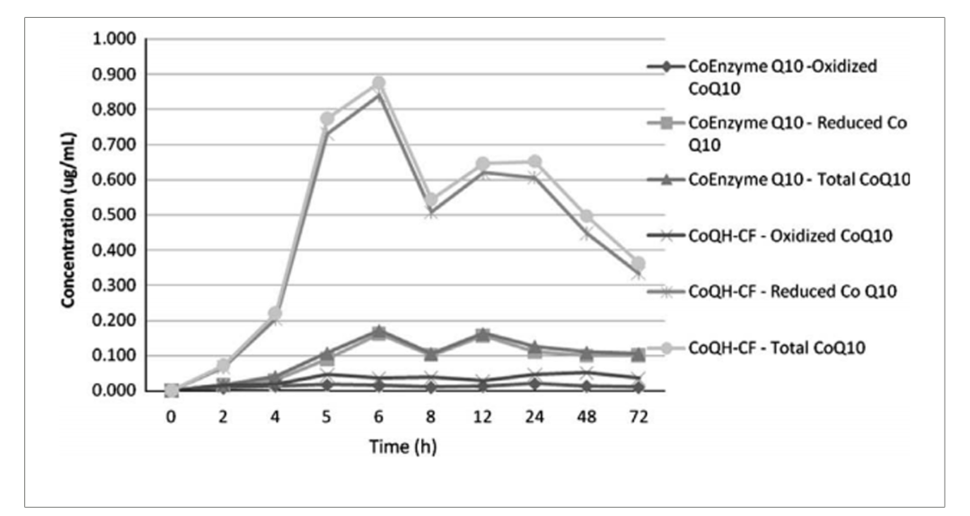 圖2:服用(yòng)氧化(huà)型和(hé)還(hái)原型輔酶Q10後的(de)藥代動力學曲線對(duì)比