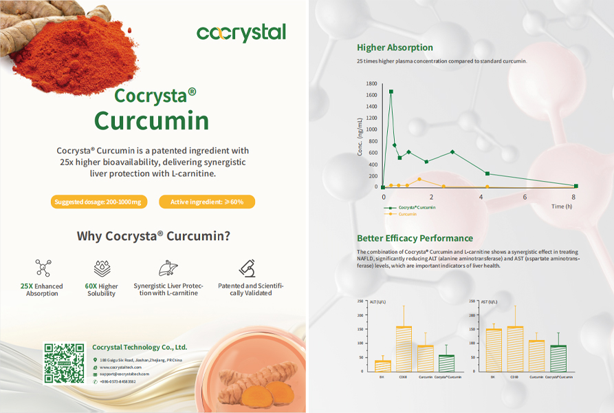 Unlock the full potential of curcumin with Cocrysta® Curcumin. Powered‌ by cutting-edge cocrystallization technology, our innovative ↕formula not only significantly improves solubility but also boasts a r✔emarkable 60 times higher bioavailability.