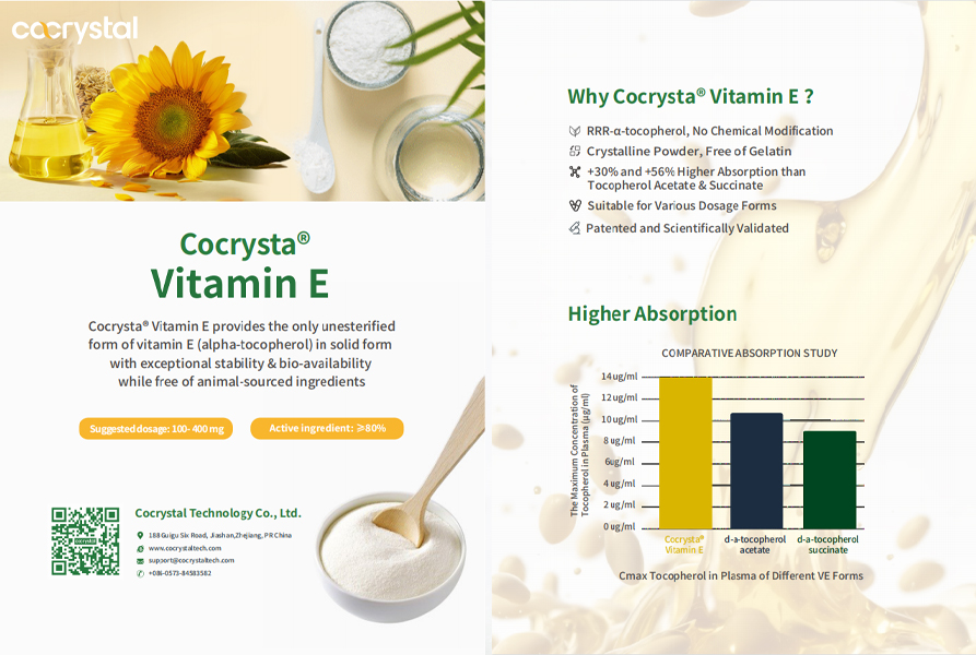 Recommended Dosage: 125-400 mg/day Cocrysta® Vitamin E (equivalent to 100-400 mg Vit✔amin E)